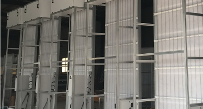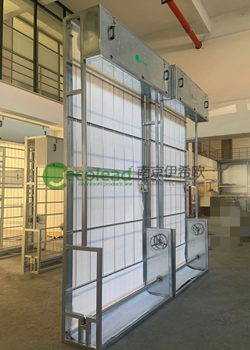 达州市第三污水处理厂自动卷帘式空气过滤器 达州市第三污水处理厂自动卷帘式空气过滤器 设备名称:自动卷帘式过滤器 设备数量:4台 设备风量:800m3/min 发货日期:2024年7月23日 自动卷帘式空气过滤器框架